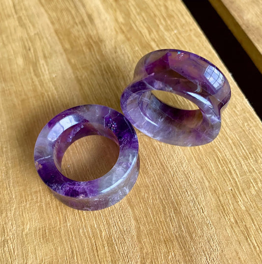 PAIR of Stunning Organic Amethyst Stone Double Flare Tunnels - Gauges 2g up to 1" (25mm)