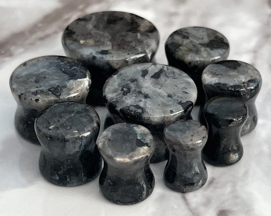 PAIR of Unique Natural Black Labradorite Organic Stone Double Flare Plugs/Tunnels - Gauges 2g (6mm) up to 3/4" (19mm)