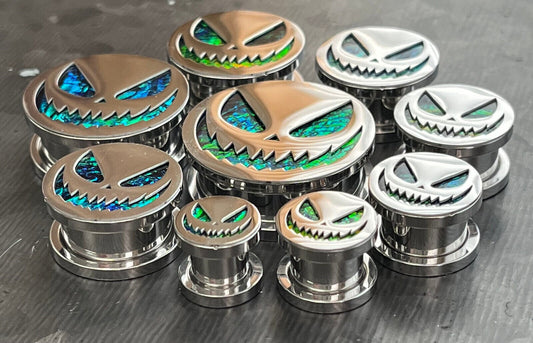 PAIR of Scary Jack-O-Lantern Steel Screw Fit Tunnels/Plugs - Gauges 0g (8mm) thru 1" (25mm)