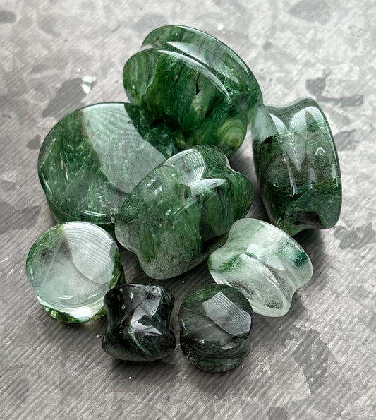 PAIR of Unique Mossy Forest Green Style Glass Double Flare Glass Plugs - Gauge 2g (6mm) thru 1&1/8" (28mm)