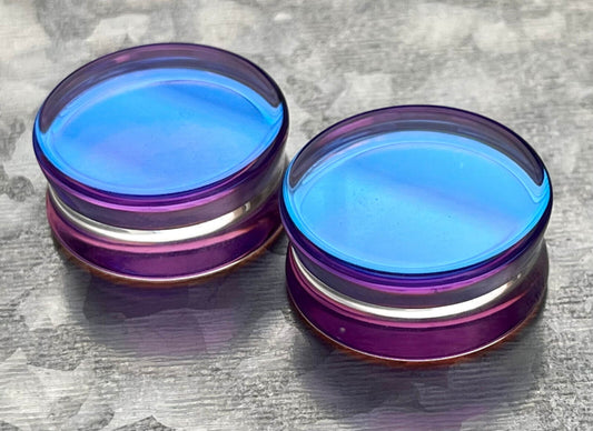 PAIR of Beautiful Mermaid Iridescent Glass Double Flare Plugs