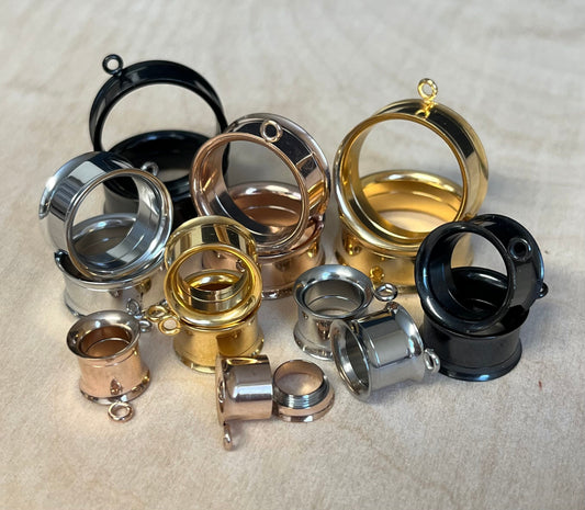 PAIR of Beautiful Add-Your-Own-Design Dangle Internally Threaded Double Flare Tunnels/Plugs - Gauges 2g (6mm) thru 1" (25mm)