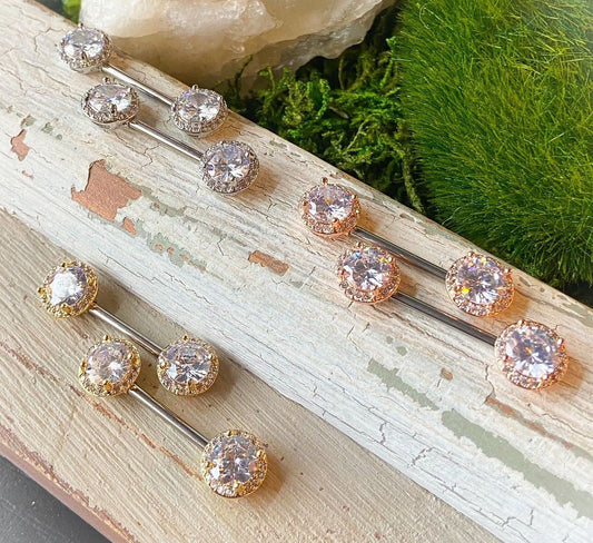PAIR Paved CZ Gems Large Gem Center Nipple Rings Pierced Body Piercing Jewelry