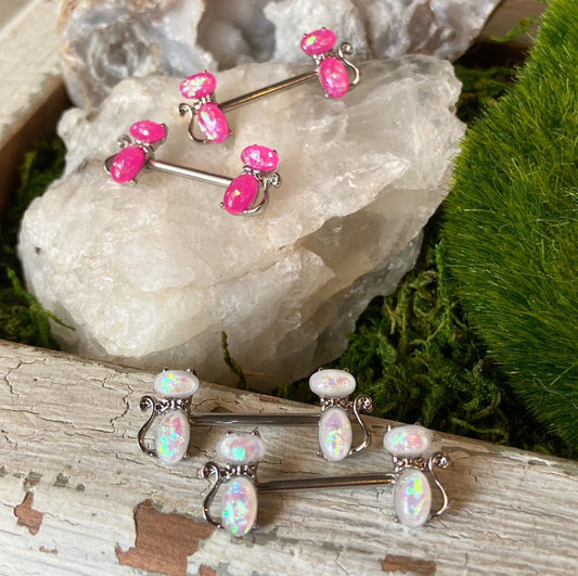 PAIR Opalite Gem Petals w/ Opal Center Flower Nipple Barbell Rings Shields