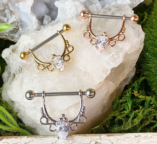PAIR Pear Gem Filigree Dangle Nipple Rings Shields Pierced Body Piercing Jewelry