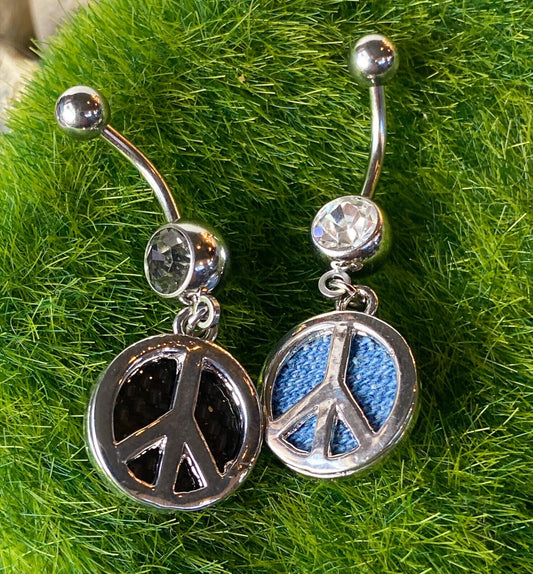 Peace Sign Carbon Fiber/Denim Belly Ring Navel Naval - Only Blue Left In Stock