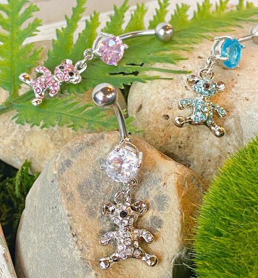 Teddy Bear Paved W/ CZ Gems Belly Ring Navel Naval Clear, Pink, Aqua