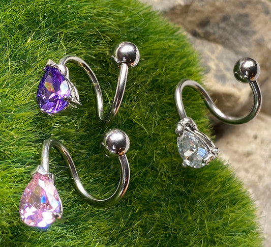 Teardrop Twist CZ Gem Belly Ring Navel Naval Clear, Pink, Purple