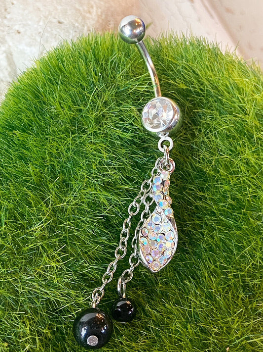 Twist Aurora Borealis Gem Belly Ring Navel Black Bead Dangles Naval Piercing