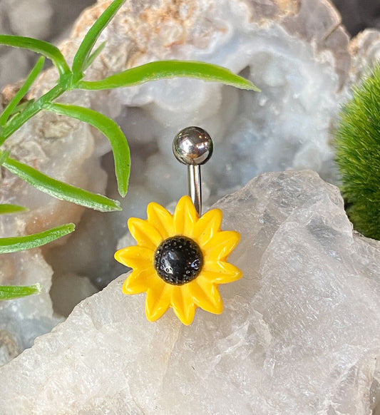Yellow Sunflower Belly Ring Piercing Navel Naval Flower Surgical Steel Jewelry