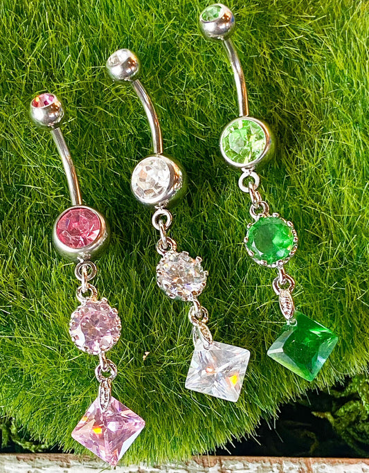 Vintage Princess Cut Press Fit Gem Belly Ring Navel Clear,Green,Pink,Tanzanite