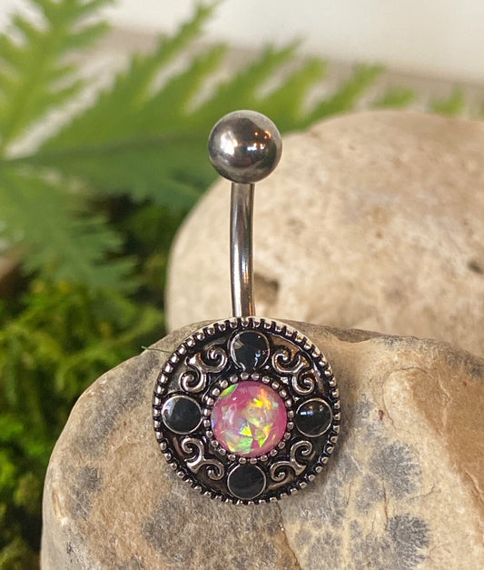 Vintage Shield Opal Center Belly Button Ring Navel Naval Body Piercing Jewelry