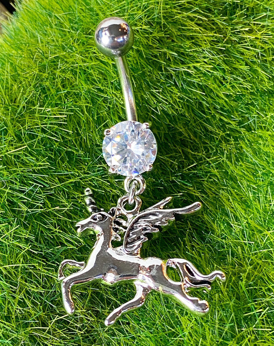 Unicorn Dangle CZ Gem Belly Ring Pierced Navel Piercing Naval Fantasy WIng Horse