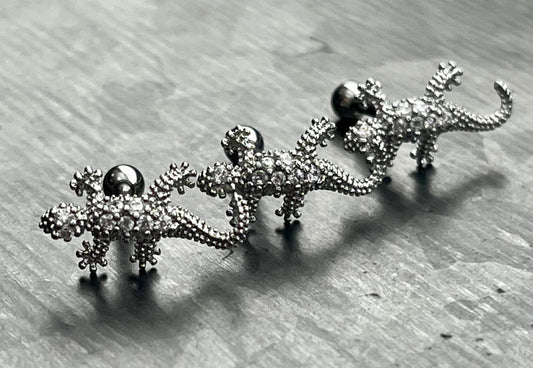 1 Piece Unique CZ Paved Stainless Steel Lizard Tragus Stud Ring - 16g - Wearable Length 1/4" (6mm) - Lizard length 14mm:)