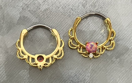 1 Piece Beautiful Lacey Opal & CZ Gem Septum Steel Ring - 16g - 9.5mm Internal Diamater - Blue, Pink, Purple and White in Gold or Silver!!