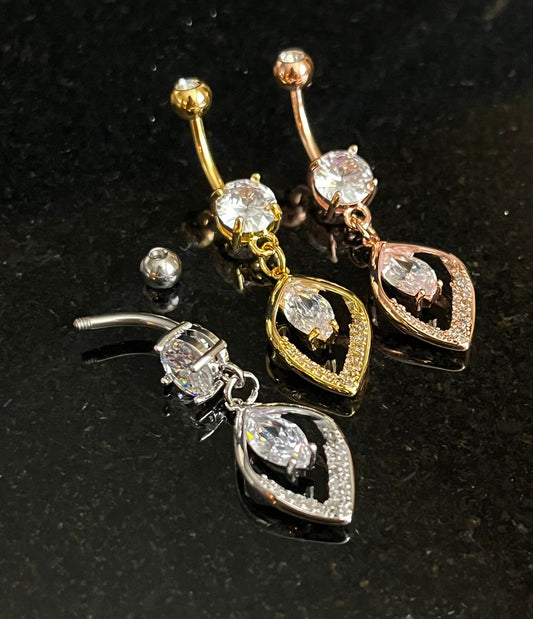 1 Piece Beautiful Hollow CZ Gem Paved Leaf Belly Button Ring Navel / Naval Belly Ring - 14g - 10mm