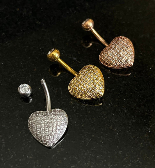 1 Piece Beautiful Paved CZ Gems Heart Navel / Naval Belly Button Ring - 14g - 10mm