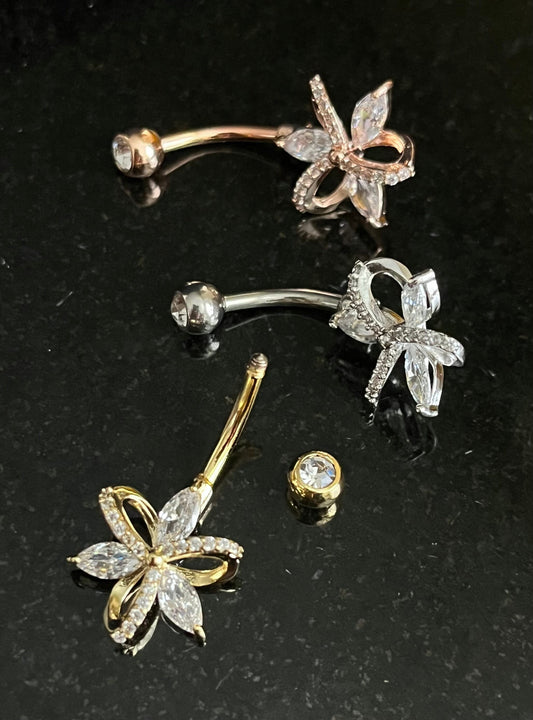 1 Piece Beautiful Hollow Paved CZ Gem Flower Navel / Naval Belly Ring - 14g - 10mm
