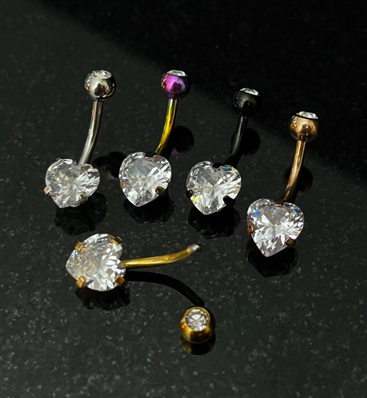 1 Piece Beautiful Prong Set 8mm CZ Gem Heart Navel / Naval Belly Ring - 14g