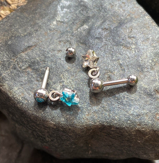 1pc Crystal Star Dangle Tragus Helix Cartilage Ring 16g 1/4" Ear Stud Barbell