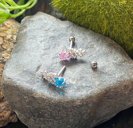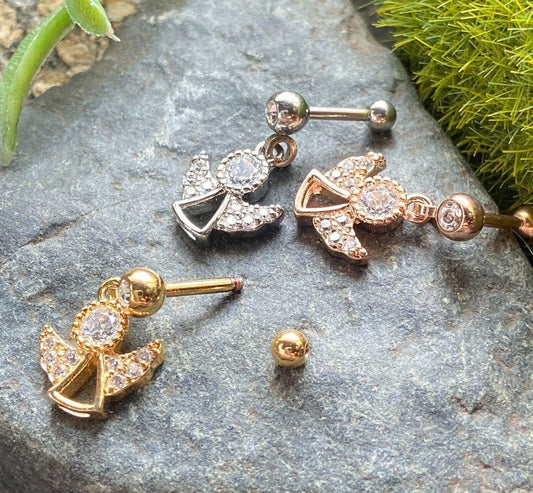 1pc CZ Gem Angel Dangle Surgical Steel Tragus Cartilage Barbell Ring 16g 1/4