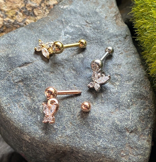 1pc CZ Gem Butterfly w/ Tear Drop Tragus Helix Cartilage Barbell Ring 16g 1/4"