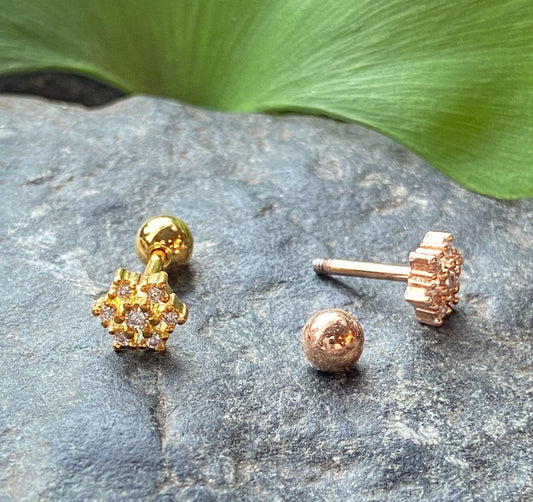 1pc Gem Snowflake Surgical Steel Tragus Helix Cartilage Barbell Ring 18g 1/4"