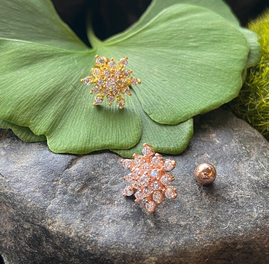 1pc Gem Paved Snowflake Surgical Steel Tragus Cartilage Barbell Ring 16g 1/4"