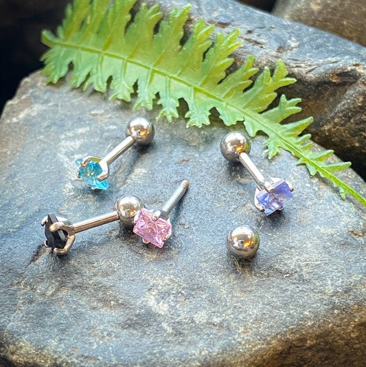 1pc Square CZ Gem Ion Plated Tragus Stud Helix Cartilage Ring Earring 16g 1/4"