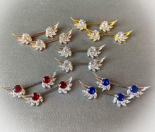 PAIR Marquise Gem Angel Wings Nipple Rings Shields Pierced Body Piercing Jewelry