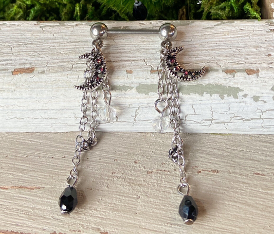 PAIR Moon & Beads Dangle Nipple Rings Steel Barbells Shields Piercing Jewelry