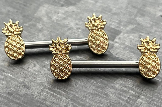 PAIR of Beautiful Gold Pineapple Surgical Barbell Nipple Rings