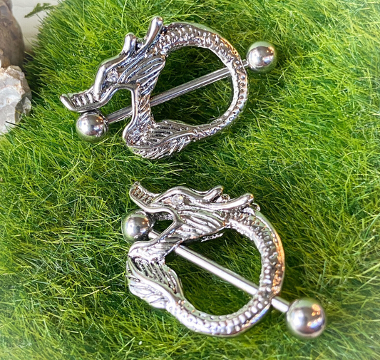 PAIR of Dragon Nipple Shields Rings Barbells Pierced Body Piercing Jewelry