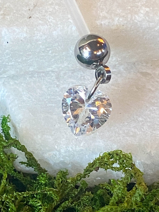 1pc Double Gemmed Heart CZ Gem Prong Set Solitaire Belly Ring Navel Naval