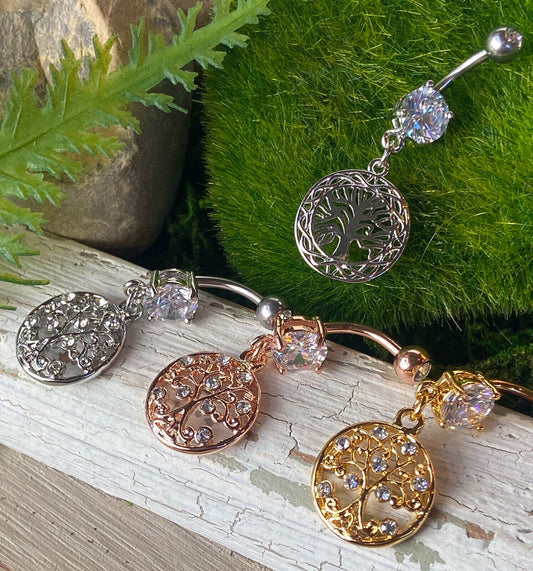 1pc Tree of Life Dangle w/Round CZ Pierced Belly Navel Naval Ring