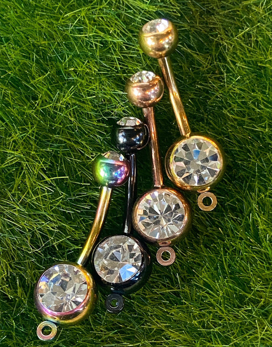 1pc Double Gemmed Round CZ Gem Prong Set Solitaire Belly Ring Navel Naval