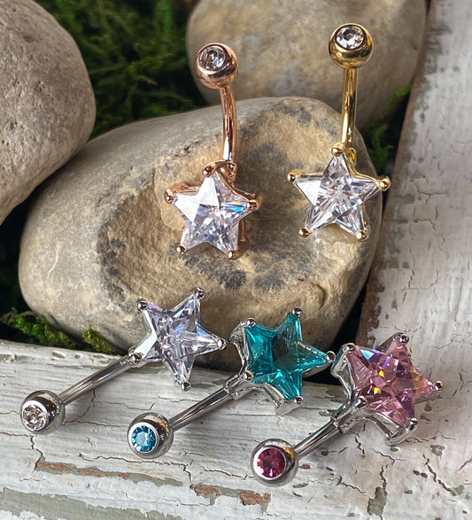 1pc Double Gemmed Star CZ Gem Prong Set Solitaire Belly Ring Navel Naval