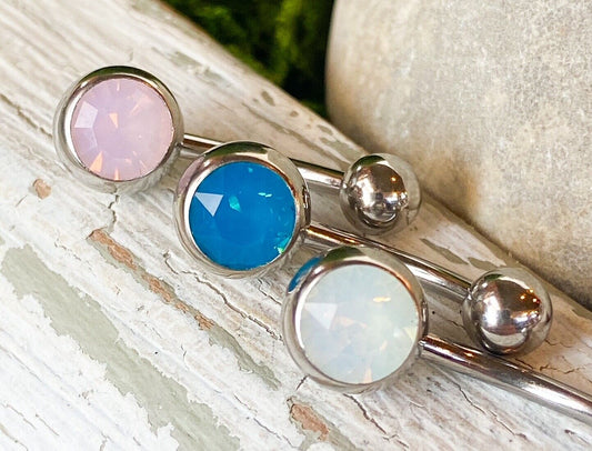 Opalite Stone Belly Ring Pierced Navel Naval Body Jewelry Clear, Pink, Blue 14g
