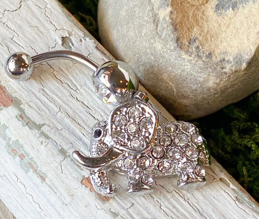 Elephant Dangle Belly Ring Paved CZ Gems Pierced Navel Naval Tusk 14g