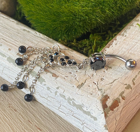 Chandelier Black Gem Belly Ring Pierced Navel Naval Piercing Body Jewelry