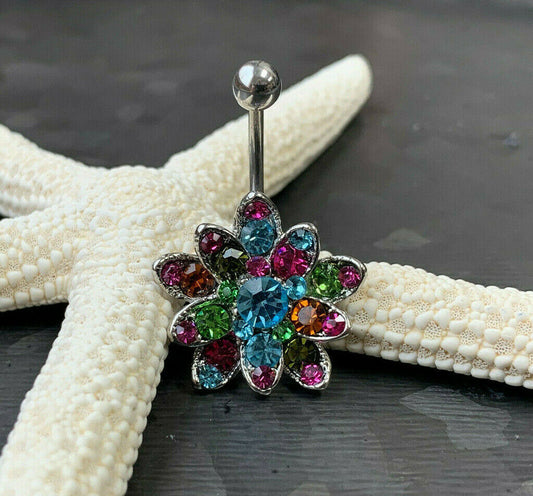 Beautiful Multi-color Gem Flower Belly Ring Navel Naval Piercing Body Jewelry
