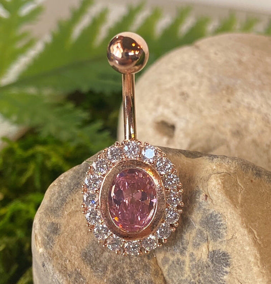 Solitaire Opal Stone Belly Ring Pierced Navel Rose Gold, Blue, Green, Pink