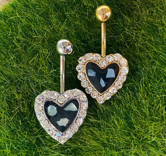 1pc Crystal Paved Heart w/ Mother of Pearl Inlaid Belly Pierced Navel Ring