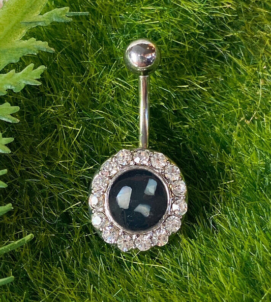 1pc Crystal Paved Edge w/ Mother of Pearl Inlaid Belly Pierced Navel Ring