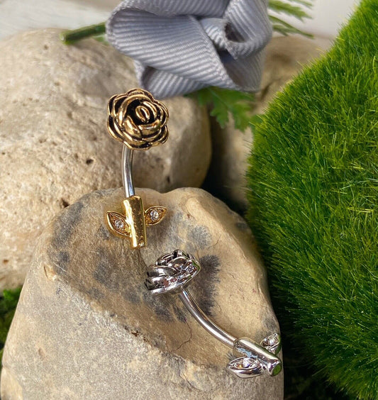 1pc Rose Stem 316L Surgical Steel Belly Pierced Navel Naval Ring
