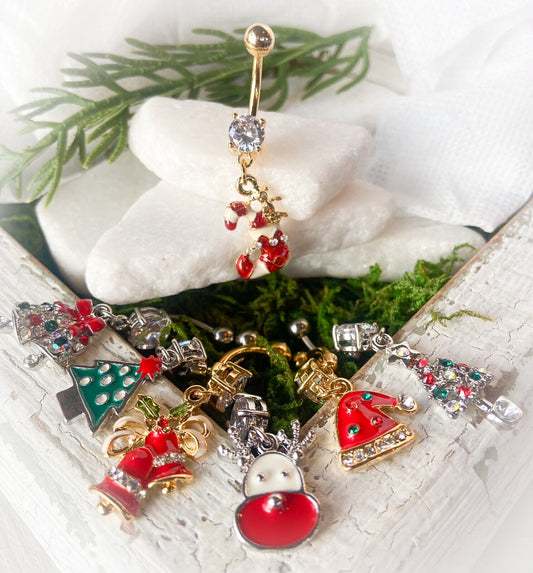 Christmas Dangle Belly Ring Pierced Navel Holiday Surgical Steel 14k Gold IP