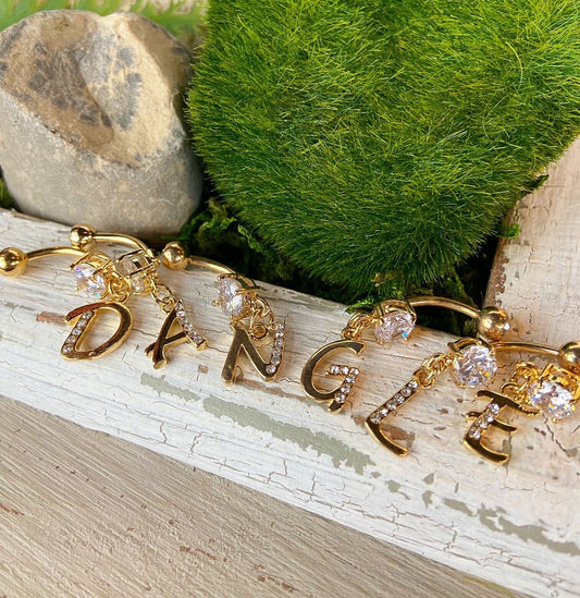 14kt Gold Plated Initial Dangle Belly Ring Naval Navel Letter Body Jewelry