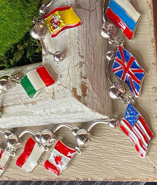 Flag Belly Ring 316L Surgical Steel Pierced Navel Naval Patriotic Country CZ Gem