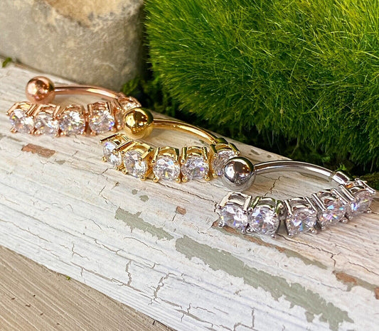 1pc Five CZ Gem Vertical Drop Belly Ring Reverse Navel Top Down Naval