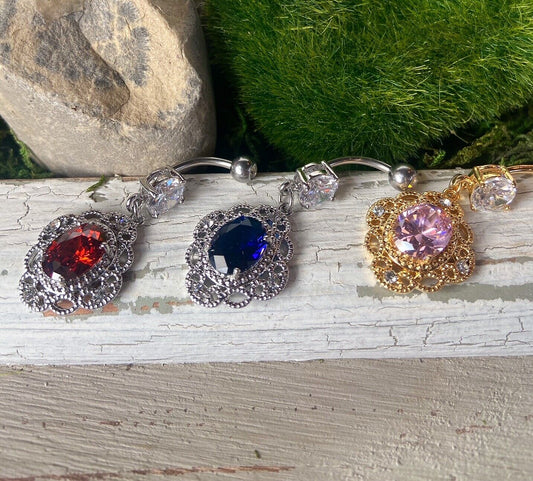 1pc Oval CZ Vintage Filigree Design Dangle Pierced Belly Navel Ring Body Jewelry
